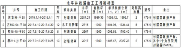 水平井找漏施工工具破損表,張新凱報(bào)導(dǎo)